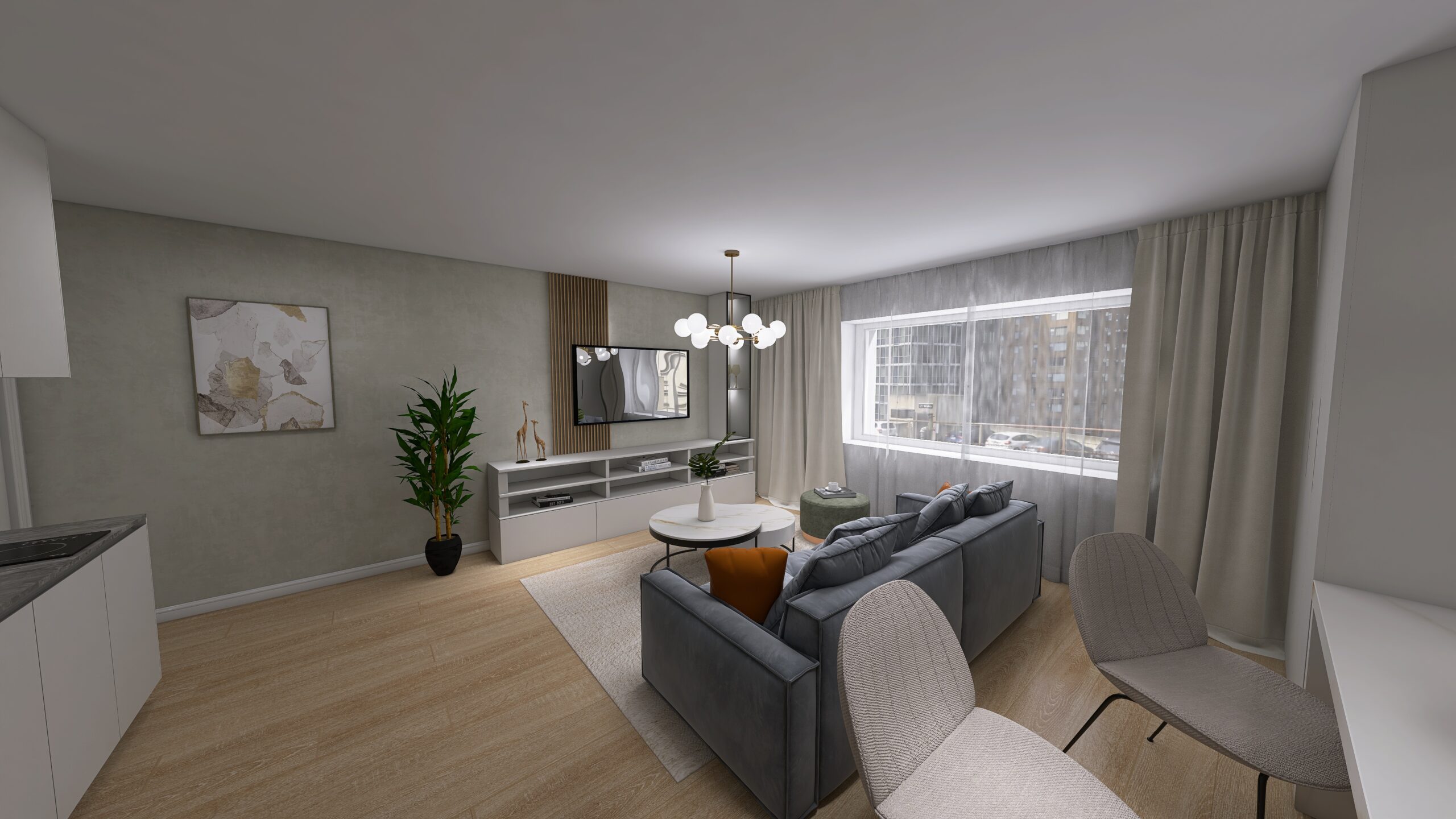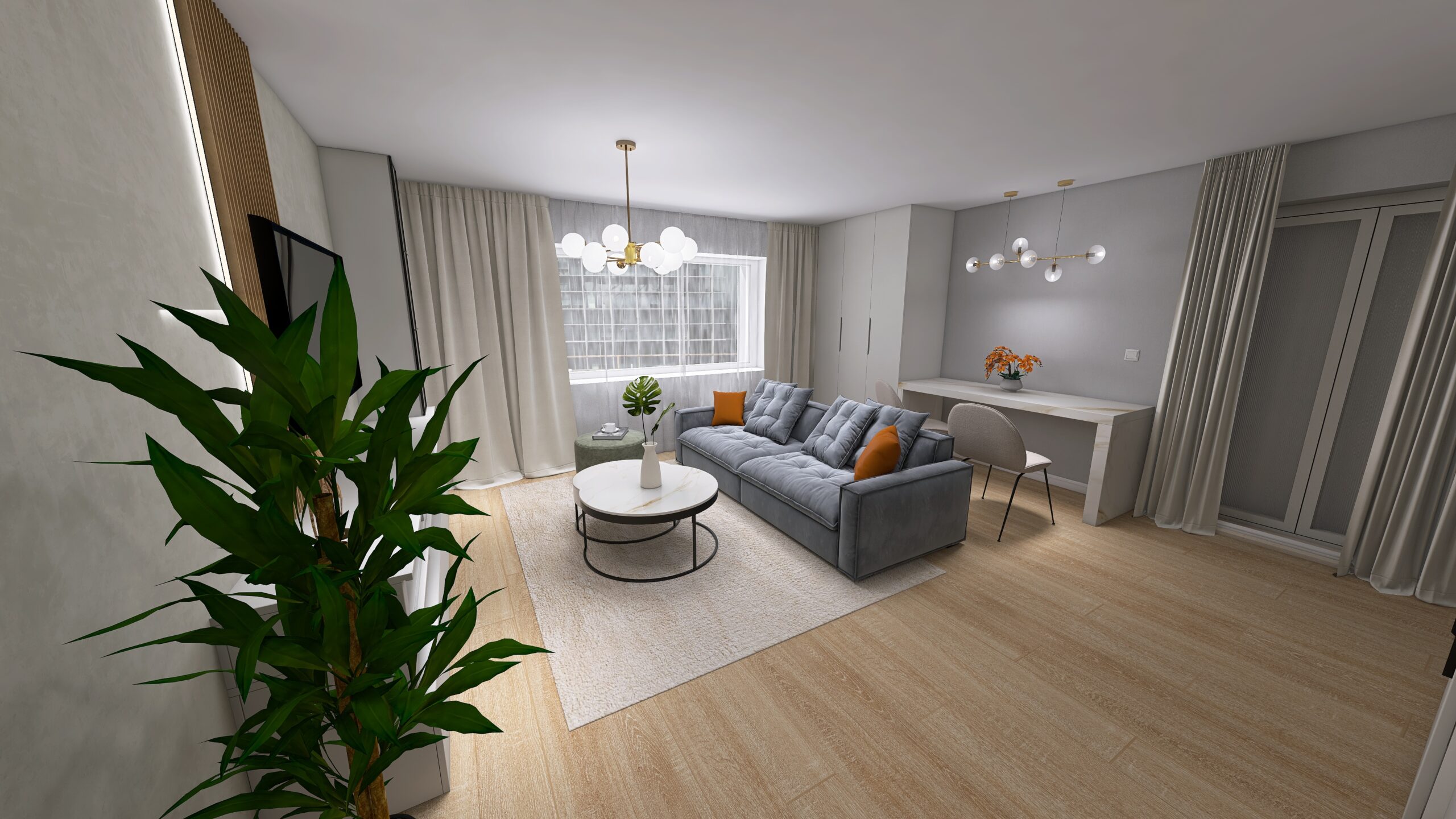 Pri tomto projekte som mala za úlohu navrhnúť dizajn spálne a obývačky, ktorá je veľmi úzko spojená s kuchyňou.